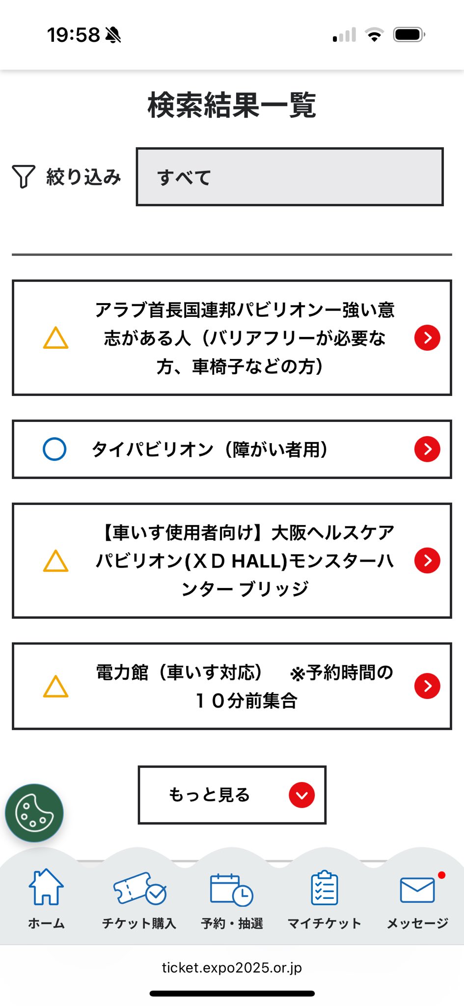 朝一で入場して当日予約が取れた時のやり方です。上記に記載した「①空きのあるパビリオンのみを表示する設定を行う」は設定済みの前提です。